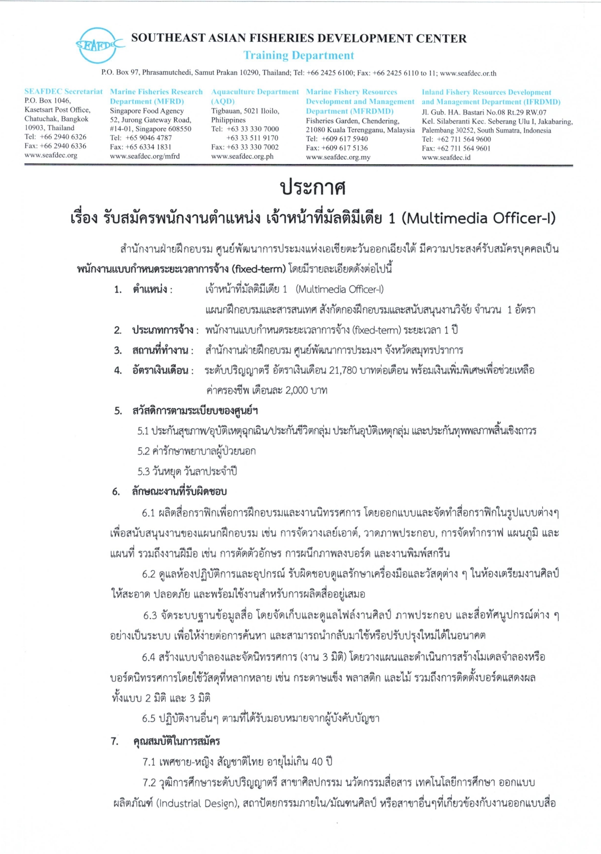 ตำแหน่งงาน : เจ้าหน้าที่มัลติมีเดีย 1